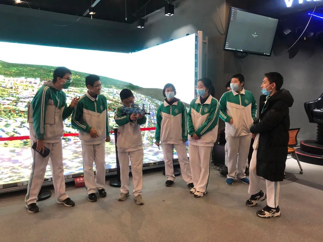 仪式后,在星空(中国)集团工作人员带领下,后备人才基地校——首都师范大学附属中学的30余名师生参观了星空(中国)展厅,现场还结合VR工业仿真等进行了科技与教育融合的互动体验。